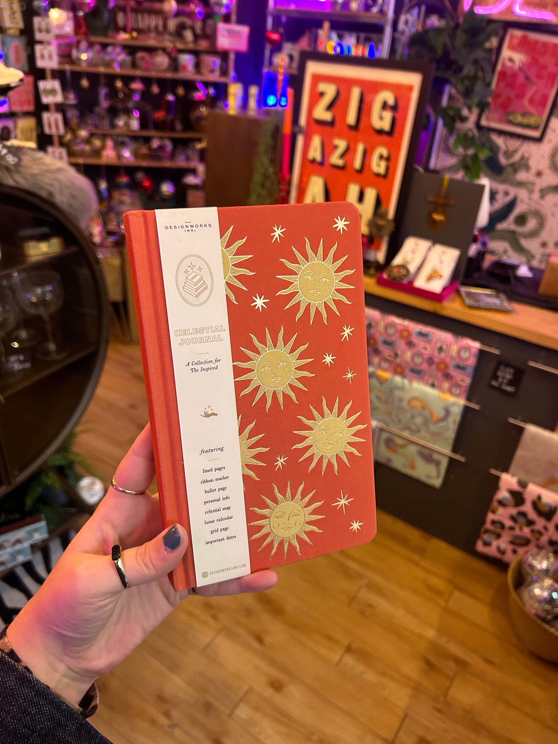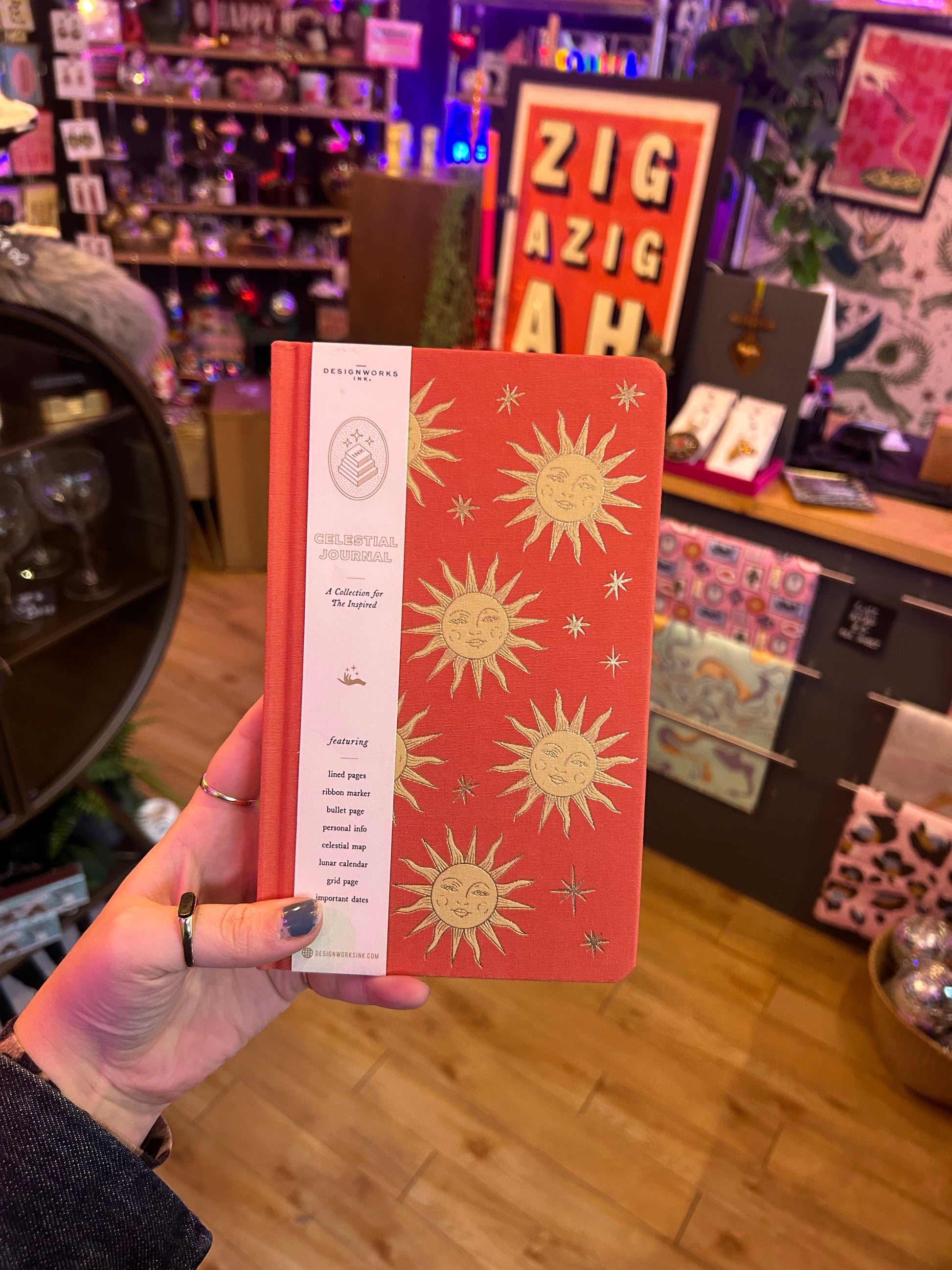 5" x 8.25" Bookcloth Wrapped Hardcover Smyth Sewn Binding ,Foil Accents, Ribbon Marker 240 Lined Pages Soy Ink on 80 gsm woodfree, acid free paper